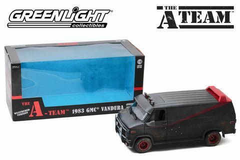 Greenlight Collectibles: The A-team – 1:18 Scale Die-Cast 1983 GMC Vandura Van (Weathered with Bullet Holes)