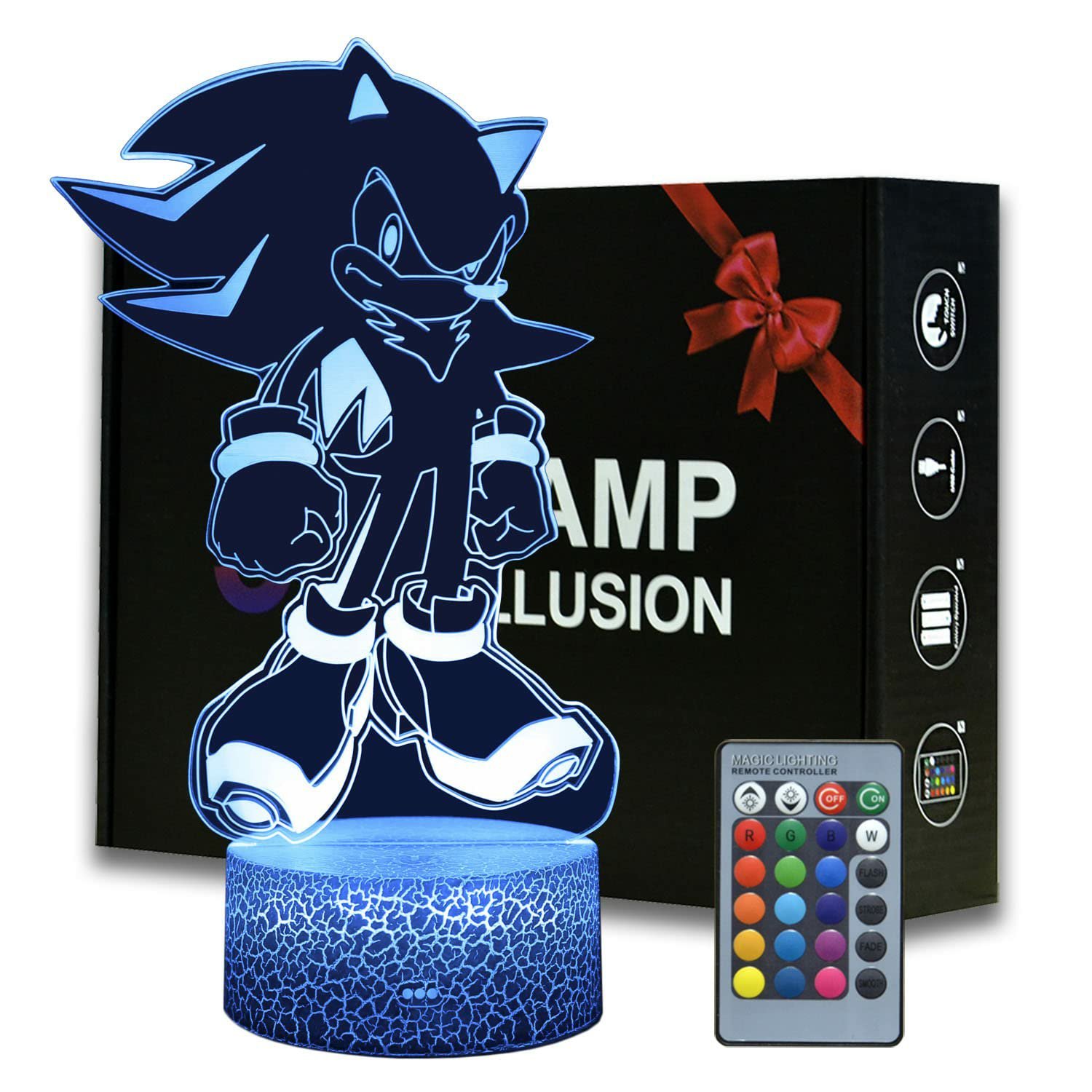 Illuminate your space with the enigmatic charm of Shadow the Hedgehog with our 3D Illusion Night Lamp. Crafted with precision, this lamp creates a mesmerizing optical illusion, bringing Shadow to life in stunning detail. Whether you’re a die-hard Sonic fan or simply appreciate unique decor, this lamp adds a touch of whimsy and style to any room. Powered by energy-efficient LED lights and featuring multiple color options, it’s not only a captivating piece of art but also a practical and eco-friendly lighting solution. Perfect for bedrooms, offices, or gaming dens, our Shadow the Hedgehog 3D Illusion Night Lamp is a must-have for any collector or enthusiast.