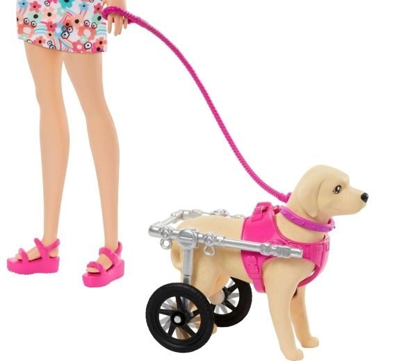 The playset comes with two main modes of play: walking and wheeling. For walking, Barbie is equipped with a leash and a pet dog, adding a delightful companion to her outdoor excursions. The dog is not just a static figure; it’s designed with a fun, interactive feature. By simply pressing a button, the dog can move alongside Barbie, mimicking a real-life walk, which adds a layer of realism to the play. This feature encourages nurturing play, as children can imagine taking care of the pet, ensuring it gets the exercise it needs.