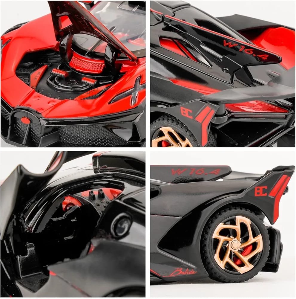 Bugatti Bolide Sports Model Car 1:32 LJX Alloy Pull Back Toy Car with Sound and Light (Red)