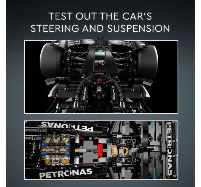 Racing drivers call it the zone. A state of super-concentration needed to perform at breathtaking speed. Now it’s time for you to get in the zone as you channel that same focus to build a LEGO Technic model of the Mercedes-AMG F1 W14 E Performance car (42171) from the 2023 season. Enjoy a rewarding build as you assemble the details of this 1:8 scale model for adults. With authentic livery details this model looks amazing from every angle, so celebrate your building achievement by placing it on display. Features include steering that can be controlled using the steering wheel or with the knob on top of the car. Remove the engine cover to reveal the differential and the 6-cylinder engine with moving pistons. With amazing attention to detail, the model also features an opening wing inspired by the real-world car’s DRS. This Mercedes F1 model car building set for adults makes a great gift idea for racing fans who love cool LEGO sets.