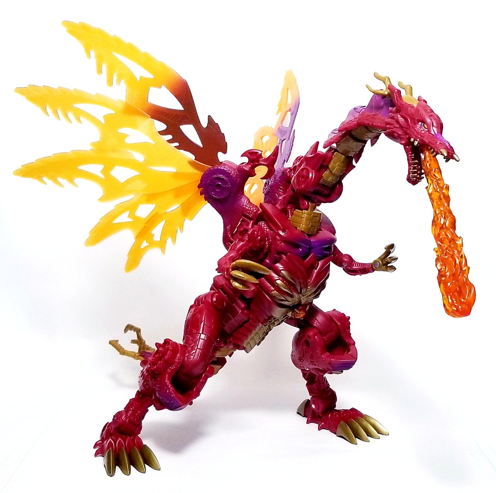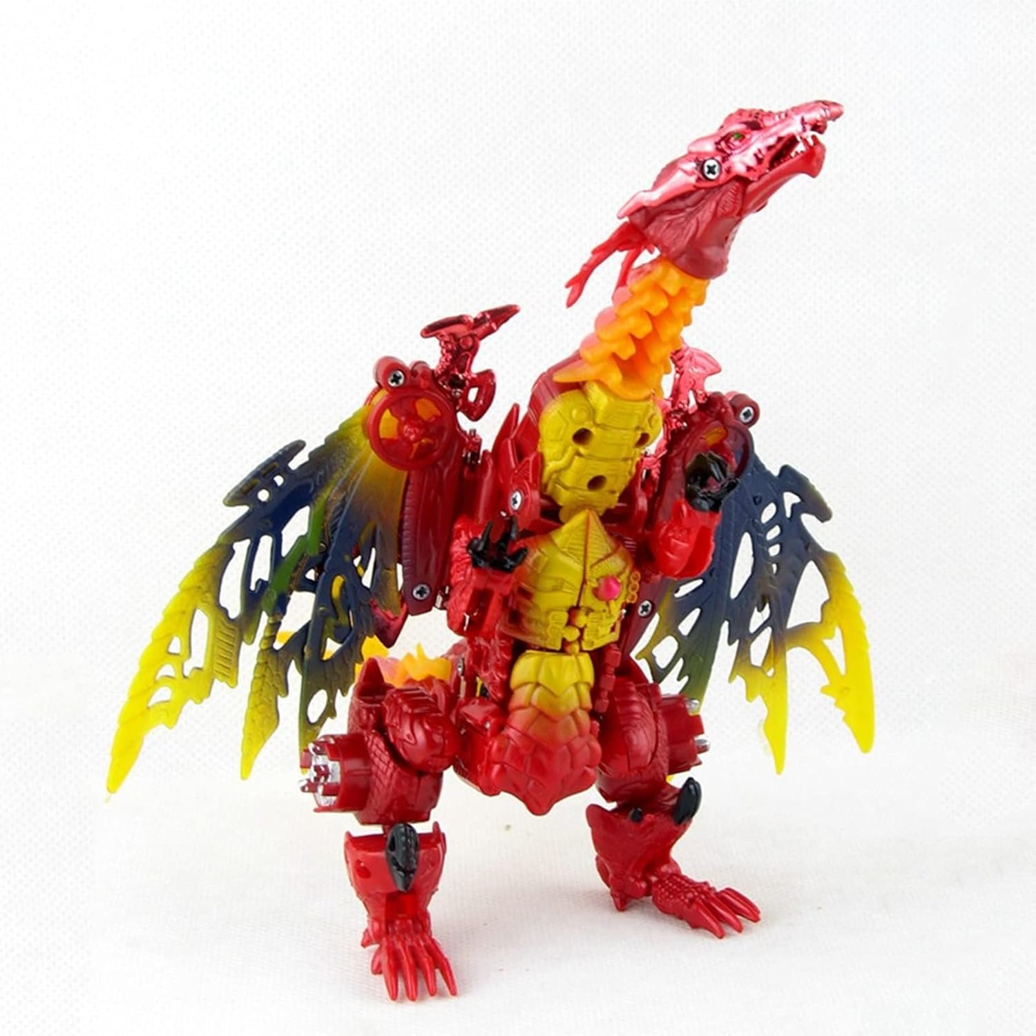 This action figure represents Megatron in his powerful Transmetal 2 dragon form, as seen in Transformers: Beast Wars. Featuring a striking red and yellow design, Megatron transforms into a fierce, fire-breathing dragon, complete with articulated wings and a dragon head that doubles as a weapon. This highly detailed figure captures the essence of Megatron as he embraces his beast mode to become even more formidable. A must-have for Transformers fans, this Megatron dragon figure adds a dynamic and fearsome presence to any collection.