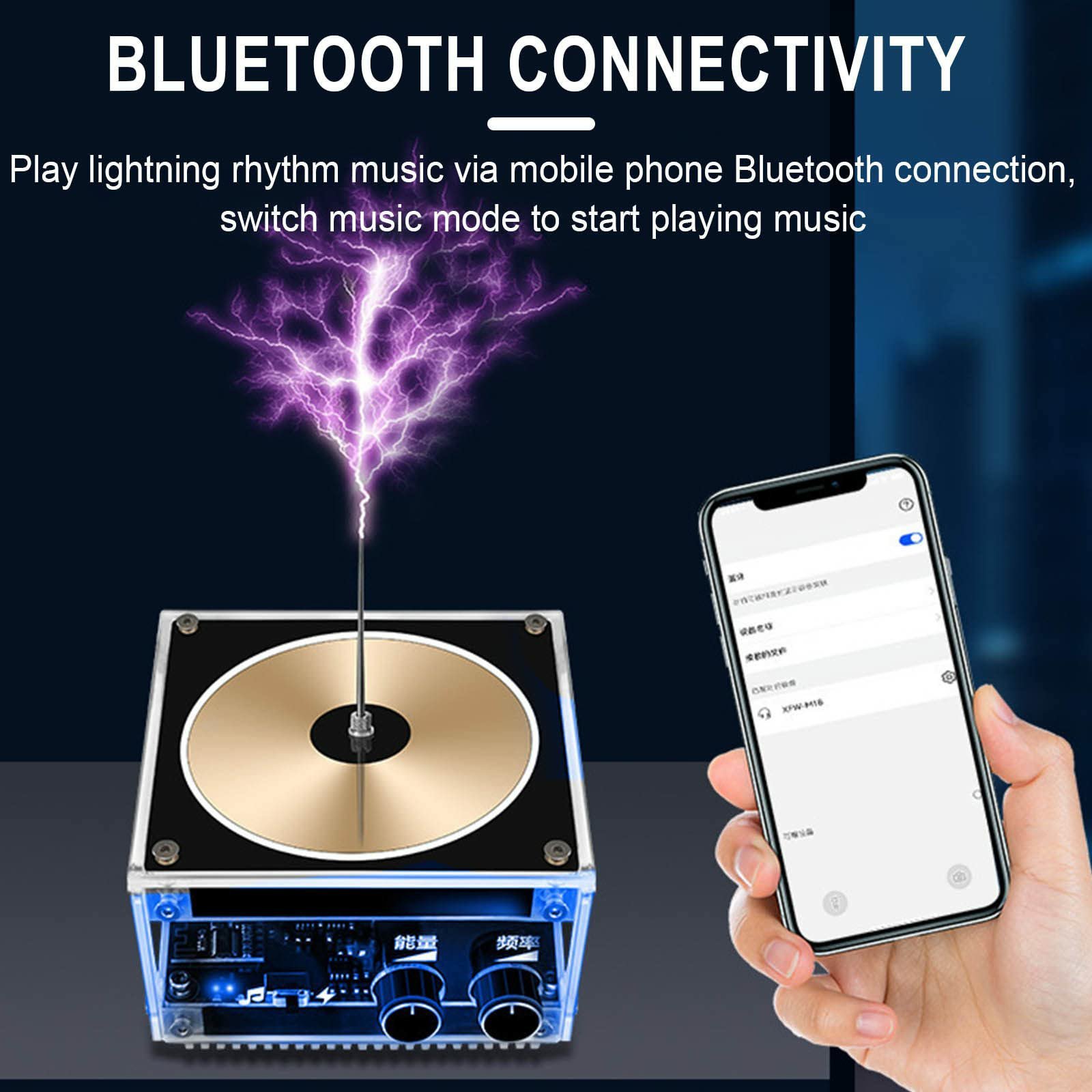 The Tesla coil speaker has a sleek metallic frame that emits vibrant arcs of lightning that dance between its twin coils, illuminating the surrounding space with a bright glow. It pulsates with power and transmits crystal-clear sound waves that resonate with the music that is playing. It seamlessly integrates wireless connectivity and captivates listeners with it’s electrifying performance!