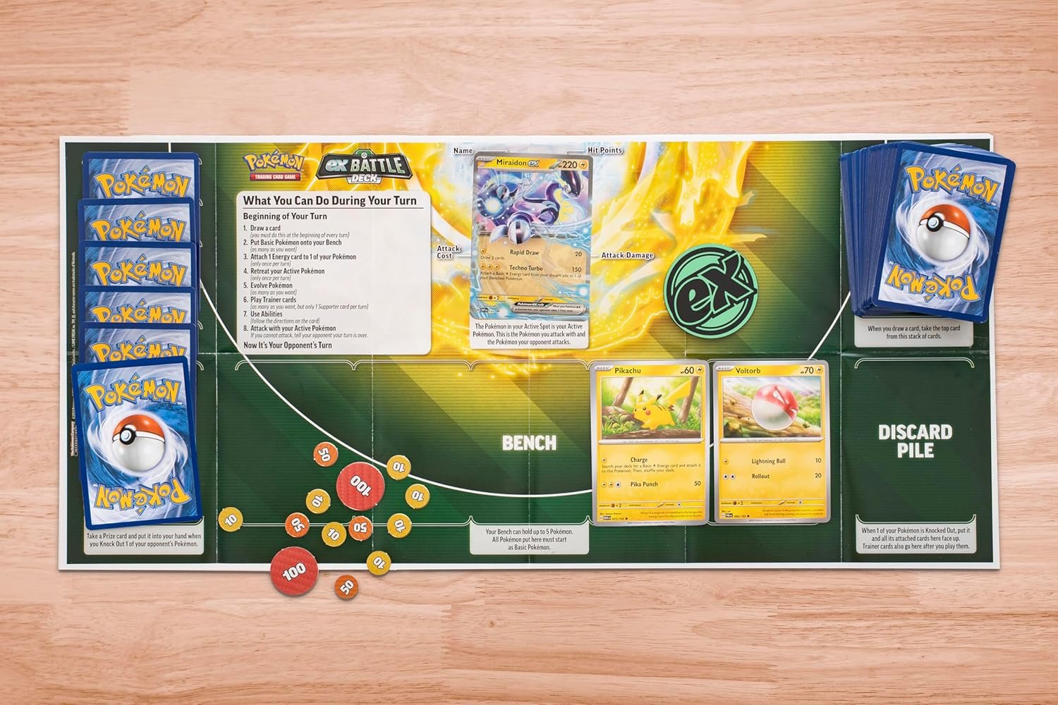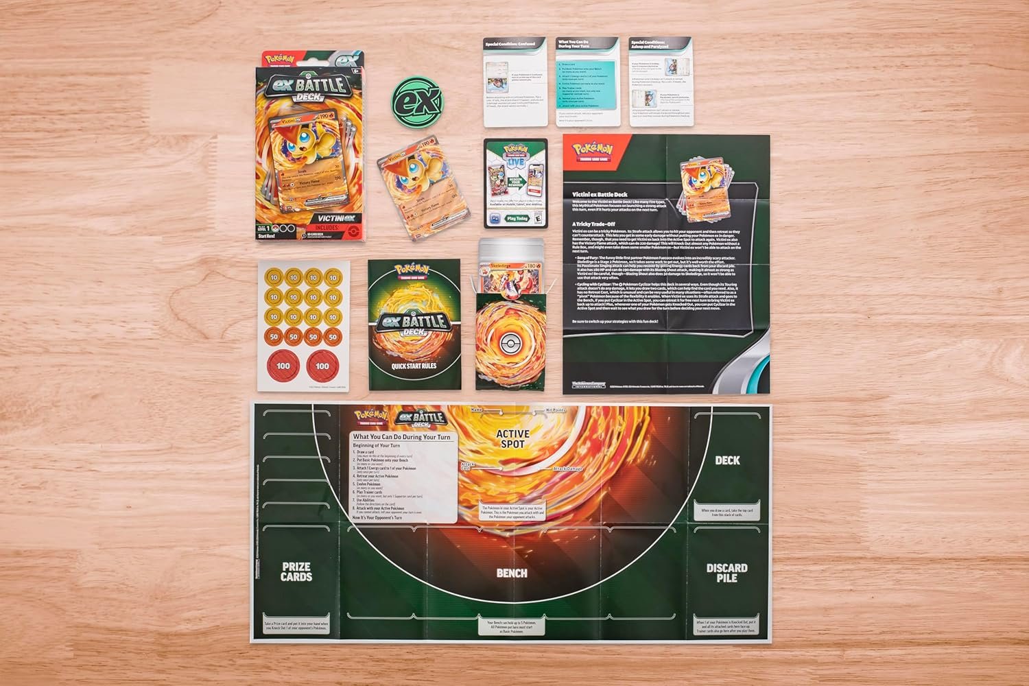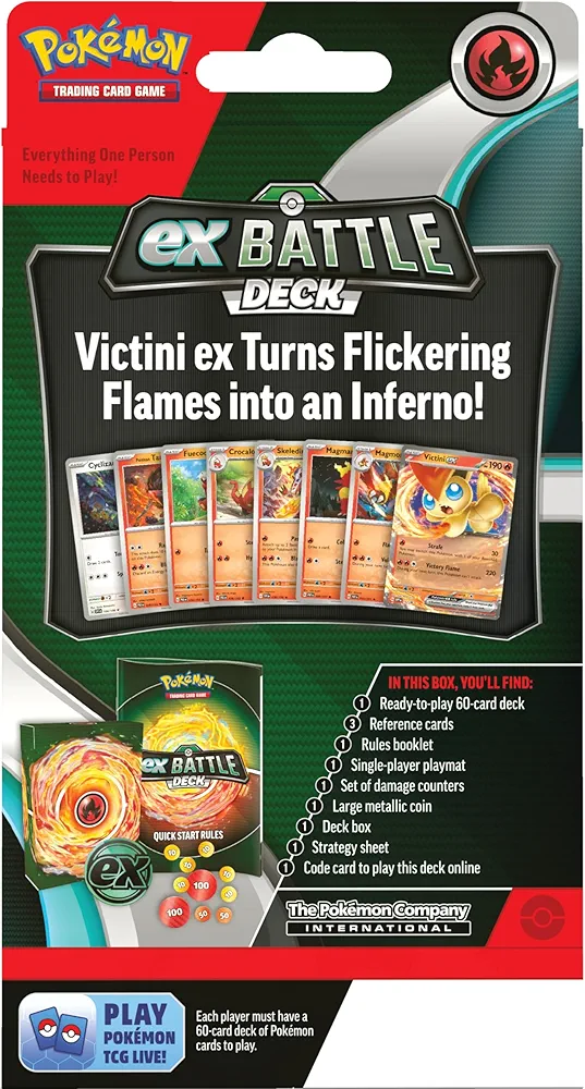 Mighty Pokémon ex Battle for Victory! Powerful Pokémon ex are ready to charge onto the battlefield in the new Pokémon Trading Card Game: ex Battle Decks! Each 60-card deck is led by an exceptional Pokémon ex and includes everything you need to play right away. Let the battle begin!