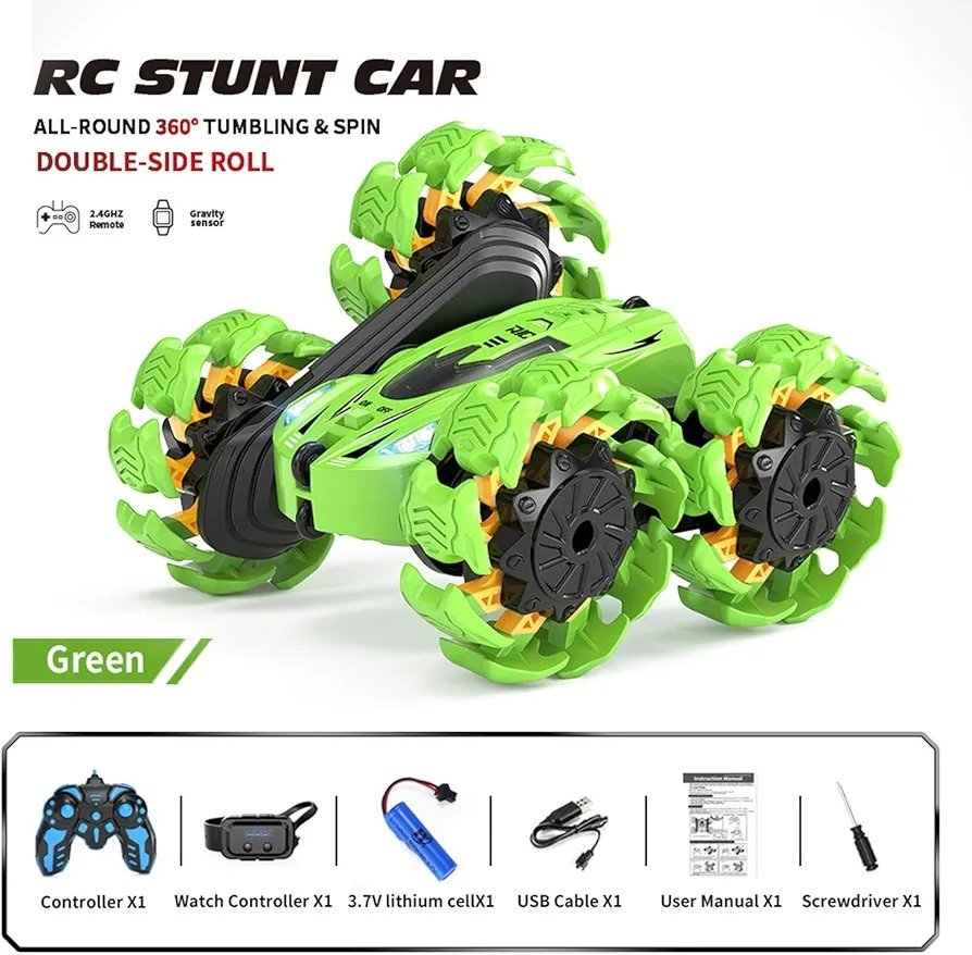 RC Stunt Car 2.4 GHz 4WD High Speed Dual Side Operating, LED Lights, Automatic Expanding Wheels